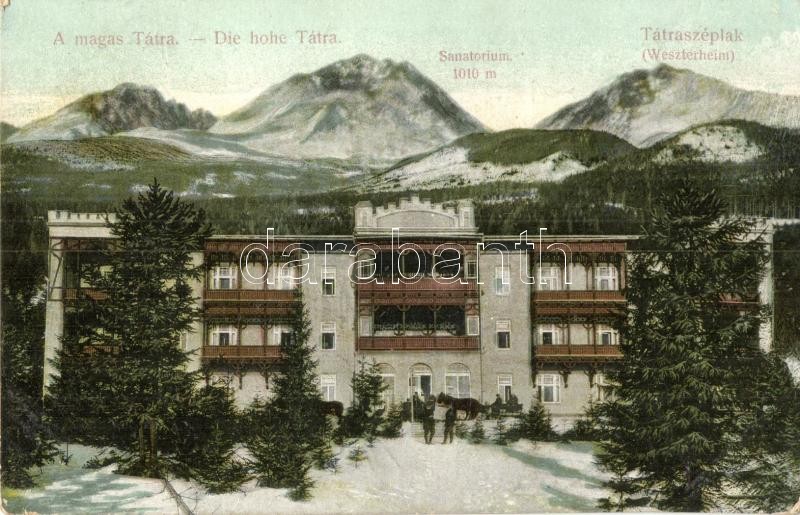 Leírás: Tátraszéplak, Weszterheim, Tatranska Polianka; Szanatórium. Divald Károly kiadása 1908. / sanatorium (EK)