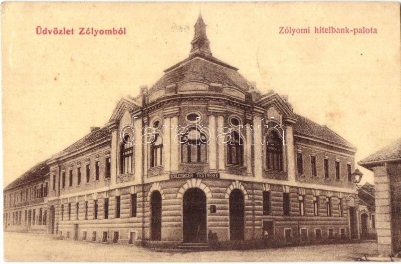 Zólyom, Zvolen; Zólyomi hitelbank palota, Schlesinger Testvérek üzlete... https://www.darabanth.com/hu/325-Gyorsarveres/325.0/Kepeslapok/Felvidek~2500006/Zolyom-Zvolen-Zolyomi-hitelbank-palota-Schlesinger-Testverek-uzlete-974-bank-palace-shop~II1810094