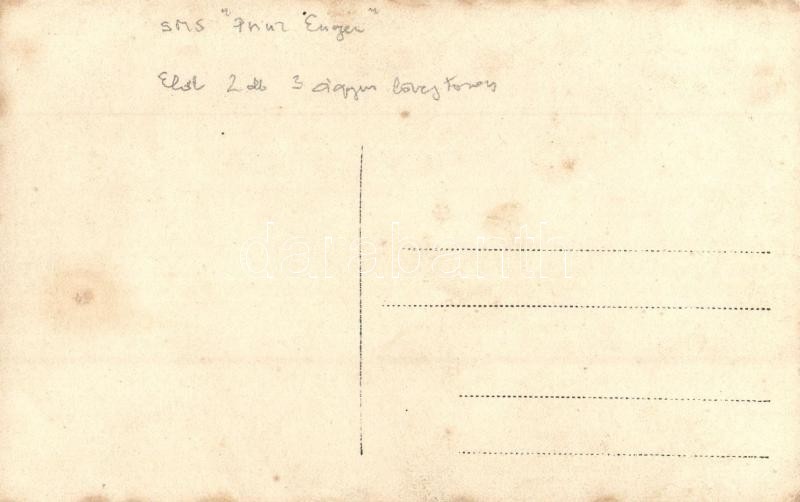 Leírás: SMS Prinz Eugen Osztrák-Magyar Haditengerészet Tegetthoff-osztályú csatahajója, elől két db 3 ágyús lövegtorony / K.u.K. Kriegsmarine / WWI Austro-Hungarian SMS Prinz Eugen dreadnought battleship, cannons. photo (EK)