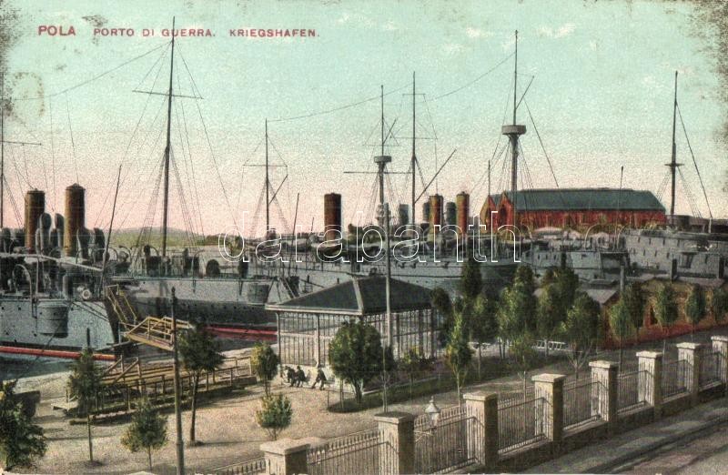 Pola, Porto di guerra / Kriegshafen / Pola, részlet a hadikikötőből, h... https://www.darabanth.com/hu/325-Gyorsarveres/325.0/Kepeslapok/Horvatorszag-Delvidek~2500008/Pola-Porto-di-guerra-Kriegshafen-Pola-reszlet-a-hadikikotobol-hadihajok-military-port~II1811890