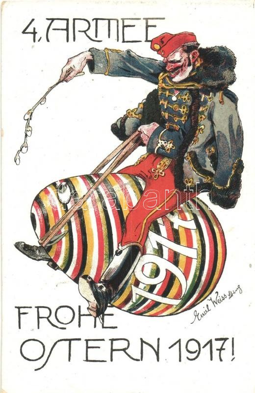 1917 Frohe Ostern vom 4. Armee! / WWI K.u.K. military Easter greeting ... https://www.darabanth.com/hu/325-Gyorsarveres/325.0/Kepeslapok/Katonai~2500058/1917-Frohe-Ostern-vom-4-Armee-WWI-KuK-military-Easter-greeting-plus-KuK-Feldbahnkompagnie-Nr~II1810930