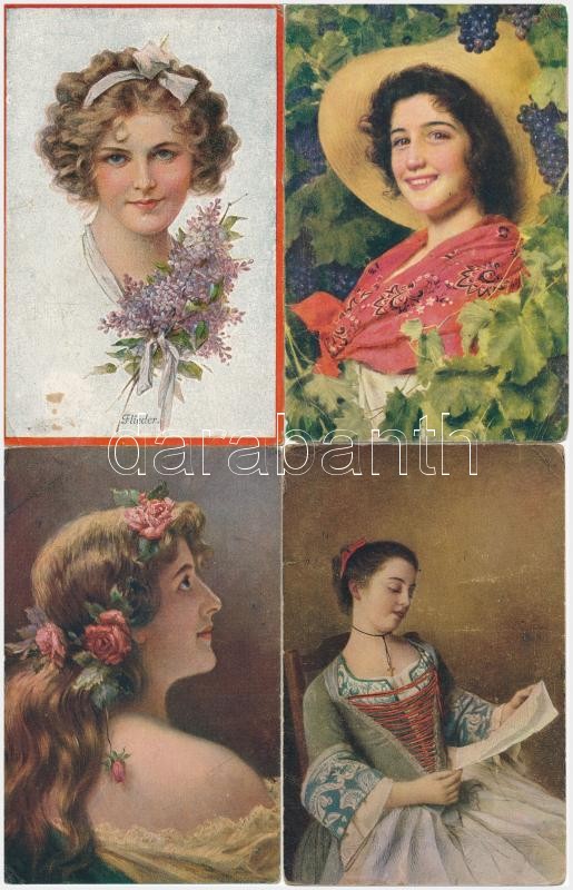 Leírás: 82 db RÉGI hölgyek művész motívumlap / 82 pre-1945 lady art motive cards