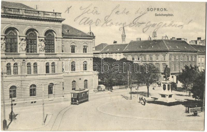 1913 Sopron, Széchenyi tér, villamos https://www.darabanth.com/hu/325-Gyorsarveres/325.0/Kepeslapok/Magyarorszag~2500004/1913-Sopron-Szechenyi-ter-villamos~II1811448