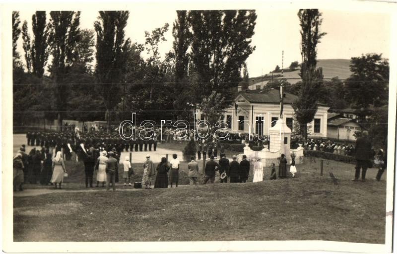 Leírás: 1936 Somsály (Ózd); Rimamurány-Salgótarjáni Vasmű Rt. kőszénbánya, Bányatelepi elemi iskola és országzászló avatási ünnepség