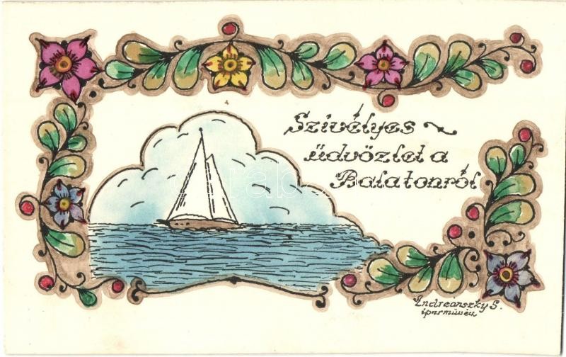 Leírás: Balaton, kézzel festett képeslap, s: Andreánszky S. iparművész