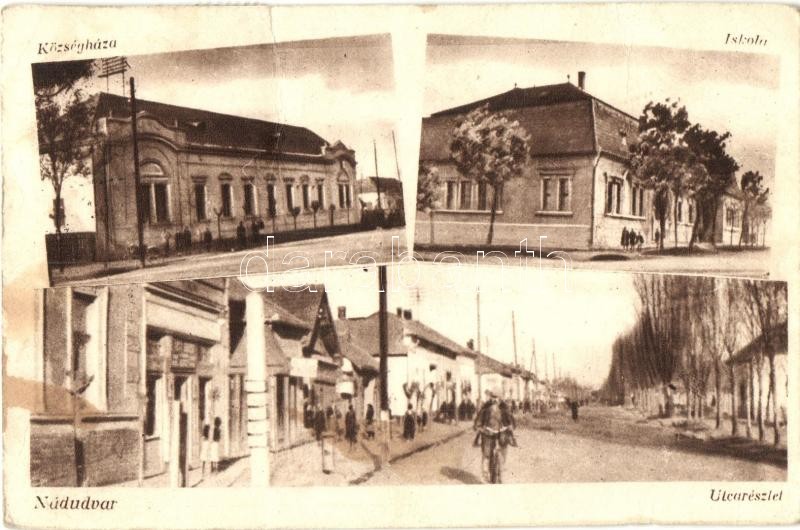 Leírás: Nádudvar, Községháza, Iskola, utcakép, üzlet, kerékpár. Özv. Horváthné kiadása (fa)