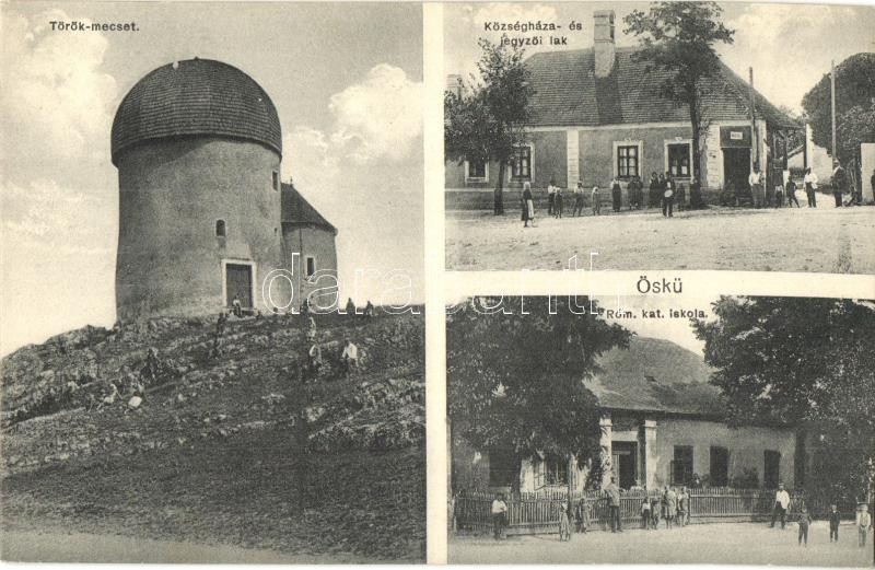 Leírás: Öskü, Török mecset, Községháza, jegyzői lak, Római katolikus iskola