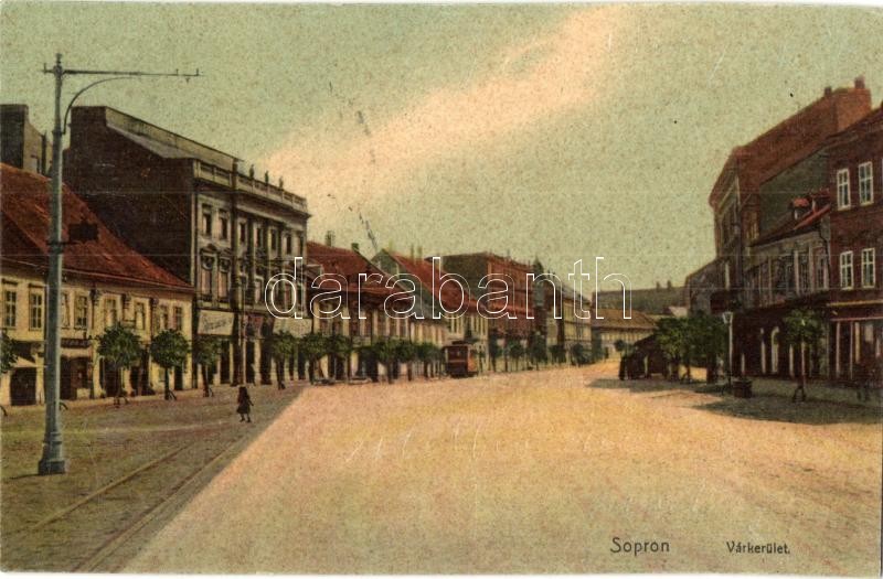 Leírás: Sopron, Várkerület, villamos, üzletek