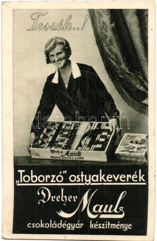 Leírás: Toborzó ostyakeverék. Dreher Mauls csokoládégyár reklámlapja / Hungarian chocolate wafer advertisement (EK)