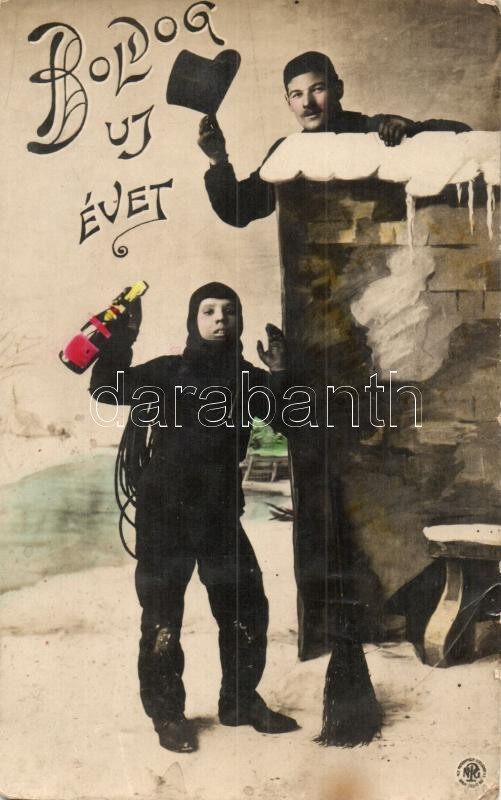 Boldog Újévet! Kéményseprők / New Year greeting card with chimney swee... https://www.darabanth.com/hu/325-Gyorsarveres/325.0/Kepeslapok/Udvozlolapok-Unnepek~2500069/Boldog-Ujevet-Kemenyseprok-New-Year-greeting-card-with-chimney-sweepers-EK~II1807732