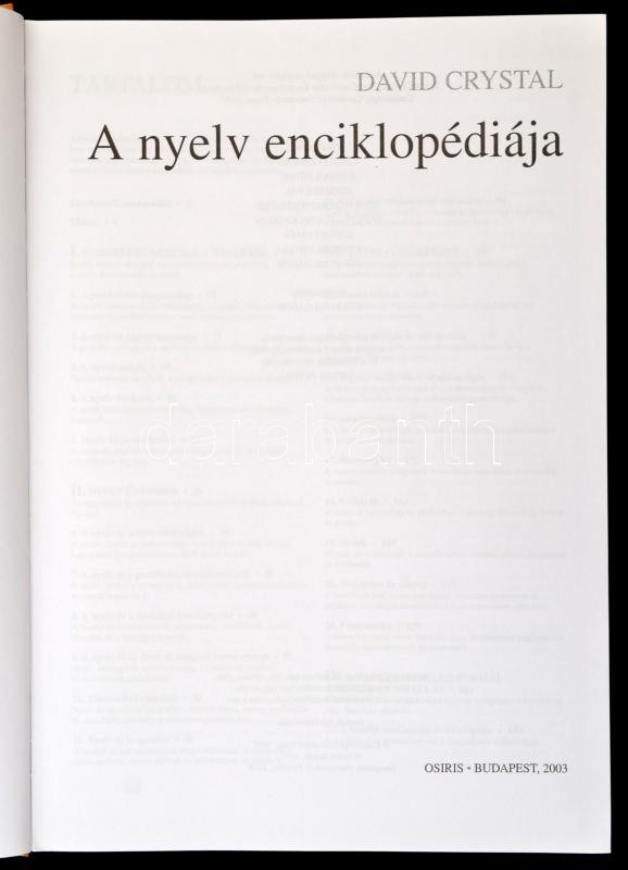 David Crystal: A nyelv enciklopédiája. Fordították többen. Szerk.: Zólyomi Gábor. Osiris Tankönyvek. Bp.,2003, Osiris. Kiadói kartonált papírkötés, ütődéssel a könyv alsó sarkán, jó állapotban.