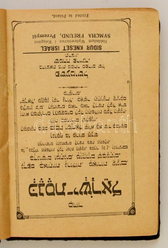 Leírás: Siddur knesset Israel. Przemyśl, é. n., Symcha Freund. Sérült vászonkötésben.