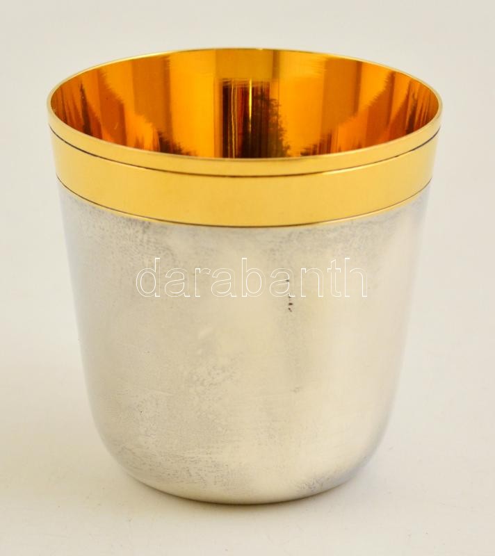 Leírás: Aranyozott ezüst pohárka, jelzett / Gold plated silver glass 96,6 g, 6,5 cm