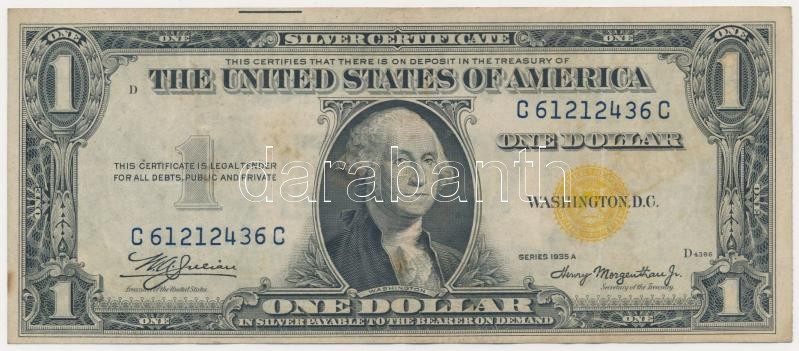 Amerikai Egyesült Államok 1934-1945. (1935A) 1$ "Silver Certificate - kisméretű" sárga pecsét, "William Alexander Julian - Henry Morgenthau Jr." T:III fo.