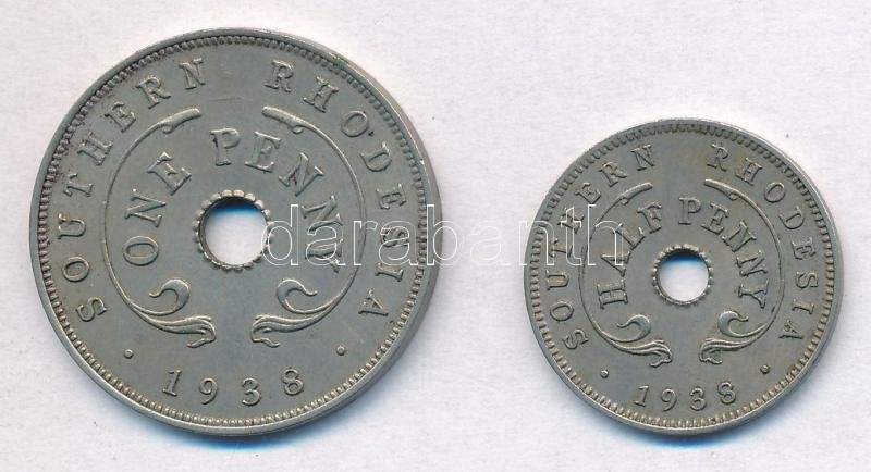 Southern Rhodesia 1938. 1/2 Penny Cu-Ni + 1 Penny Cu-Ni C:AU