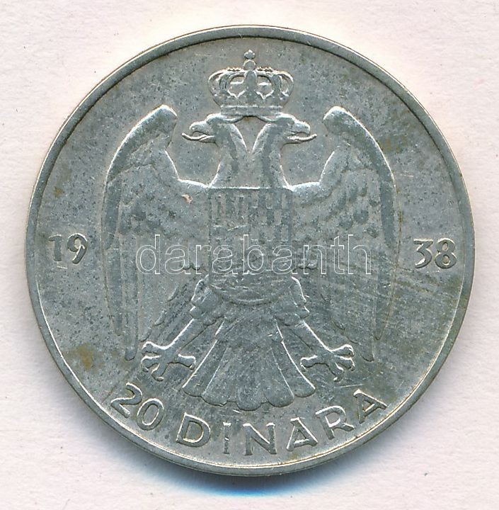 Yugoslavia 1938. ... https://www.darabanth.com/hu/325-Gyorsarveres/325.0/Numizmatika/Kulfoldi-fem-es-ezustpenzek~2000013/Jugoszlavia-1938-20D-Ag-II-Peter-T2--Yugoslavia-1938-20-Dinara-Ag-Petar-II-CXF~II1796608