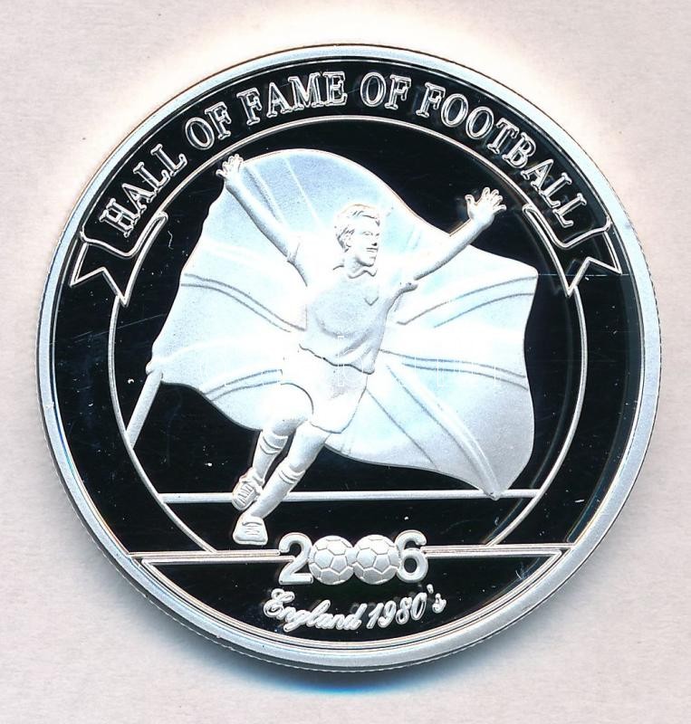 Uganda 2006. 2000Sh Ag "A labdarúgás halhatatlanjainak csarnoka - Anglia 1980-as évek / Gary Lineker" T:PP Uganda 2006. 2000 Shillings Ag "Hall of Fame of Football - England 1980s / Gary Lineker" C:PP