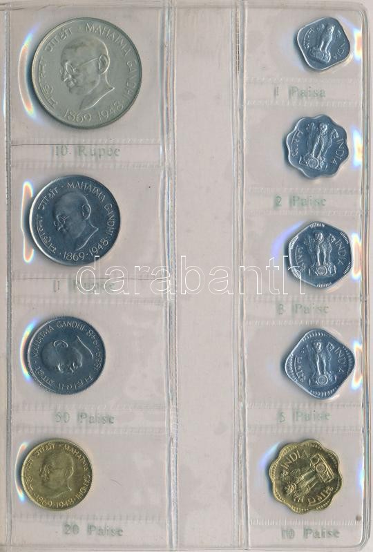 India 1969. 1p-10R (9xklf) forgalmi sor műbőr tokban, közte 1969. 10R Ag "Mahatma Ghandi" T:1,1-