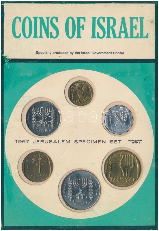Israel 1967. 1 Agora - 1 Lira (6xdiff) coin set slightly damaged in cardboard case C:UNC,AU