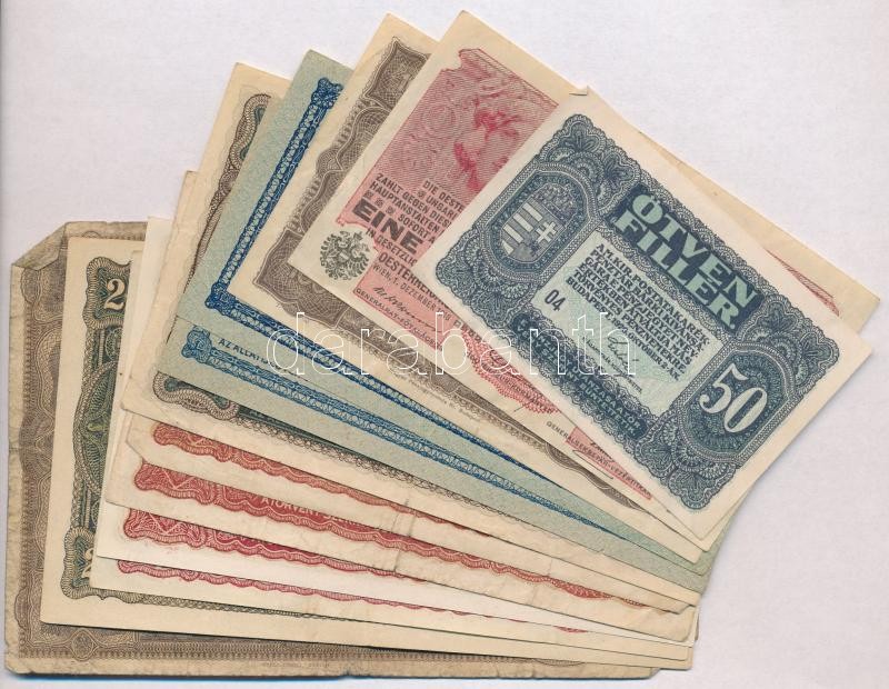 Leírás: 1916-1923. 12db-os vegyes magyar korona bankjegy tétel T:II-IV