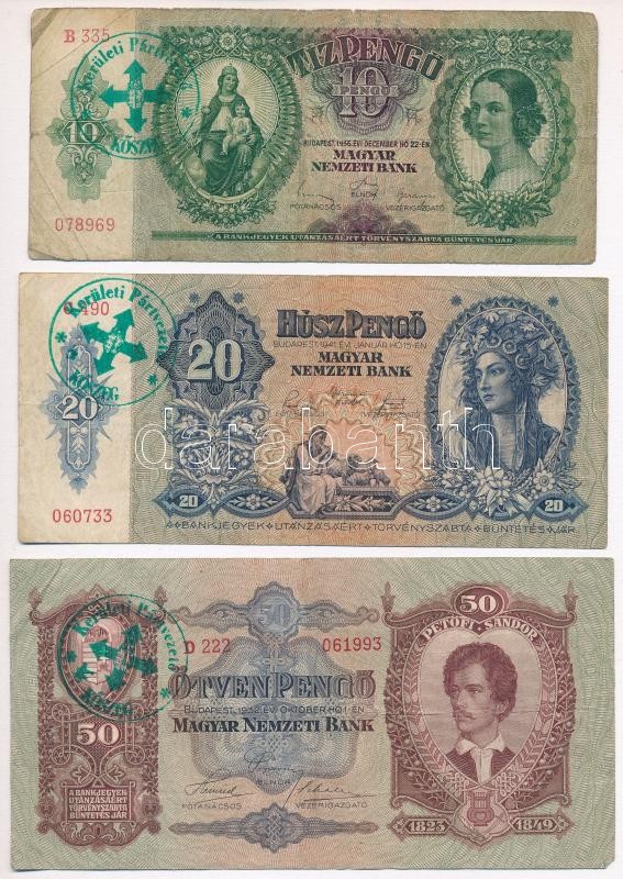 1930-1941. 10P + 20P + 50P + 100P hamis "Kerületi Pártvezető Kősz... https://www.darabanth.com/hu/325-Gyorsarveres/325.0/Numizmatika/Magyar-bankjegyek~2000007/1930-1941-10P-plus-20P-plus-50P-plus-100P-hamis-Keruleti-Partvezeto-Koszeg-felulbelyegzessel-fake-~II1809758