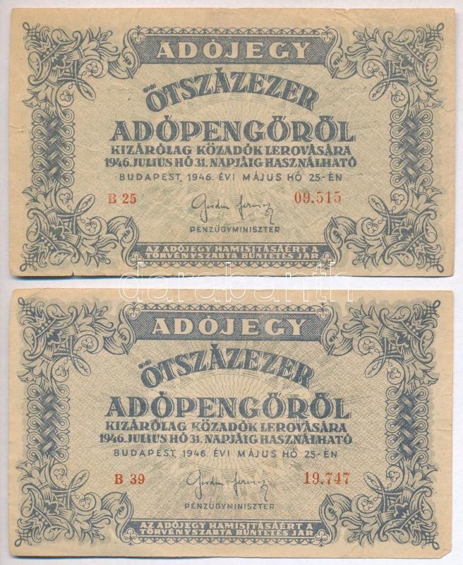 Leírás: 1946. 500.000AP (2x) egyiken "amelyekNEK", vízjeles papíron, sorszámozott T:III,III- kis szakadás