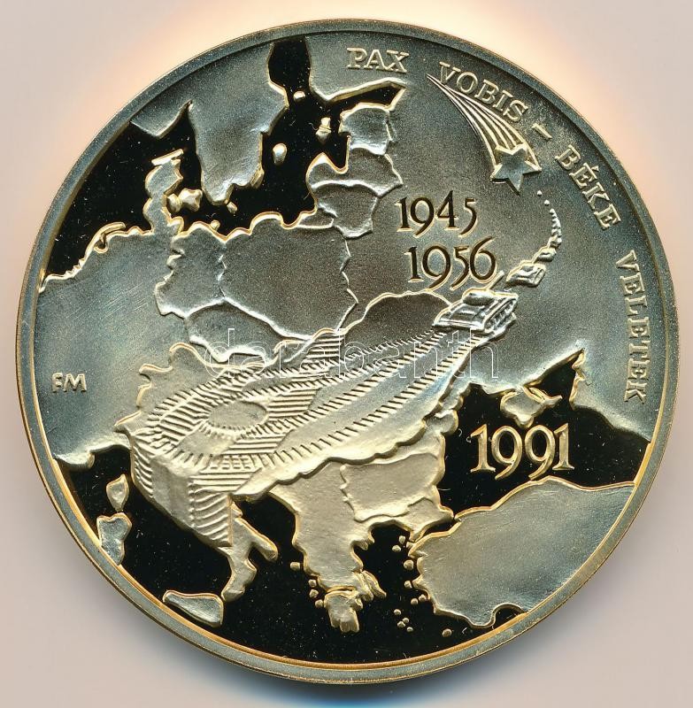Leírás: Fritz Mihály (1947-) 1991. "Pax Vobis - Béke veletek 1945-1956." aranyozott emlékérem (65mm) T:PP
