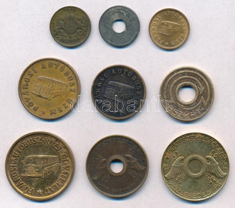 Leírás: 1933. "BSZKRT / Kisszakaszjegy" + 1943. "BSZKRT - Váltójegy" + 1946- 1Ft "Fővárosi Autóbusz Üzem / FAÜ" + 5Ft "BSZKRT" + 10Ft "Fővárosi Autóbusz Üzem / FAÜ" + 10Ft "Budapest Székesfővárosi Közlekedési Rt. / BSZKRT" + 20Ft "Fővárosi Autóbusz Üzem / FAÜ" + 50Ft "Budapest Székesfővárosi Közlekedési Rt. / BSZKRT" + 50Ft "Fővárosi Autóbusz Községi Vállalat" T:1-,2