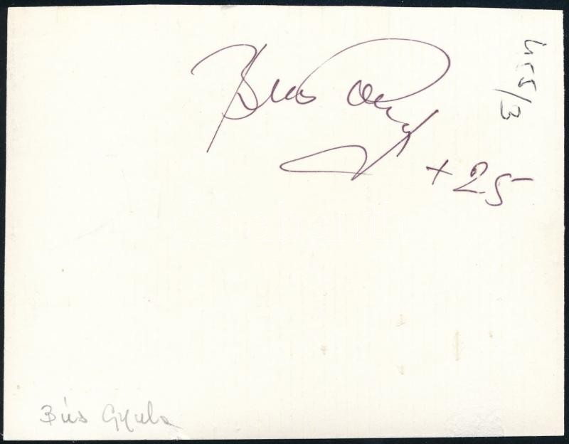 Leírás: Buss Gyula (1927-2008) színész aláírása őt ábrázoló fotó hátulján