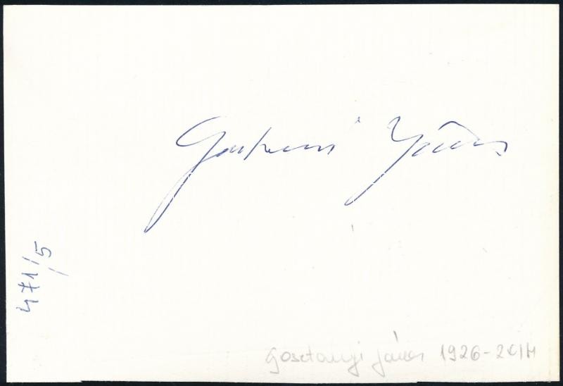 Gosztonyi János (1926-2014) rendező aláírása őt ábrázoló fotó hátulján https://www.darabanth.com/hu/326-Gyorsarveres/326.0/Festmeny-mutargy-papirregiseg-egyeb/Alairas~500019/Gosztonyi-Janos-1926-2014-rendezo-alairasa-ot-abrazolo-foto-hatuljan~II1809352