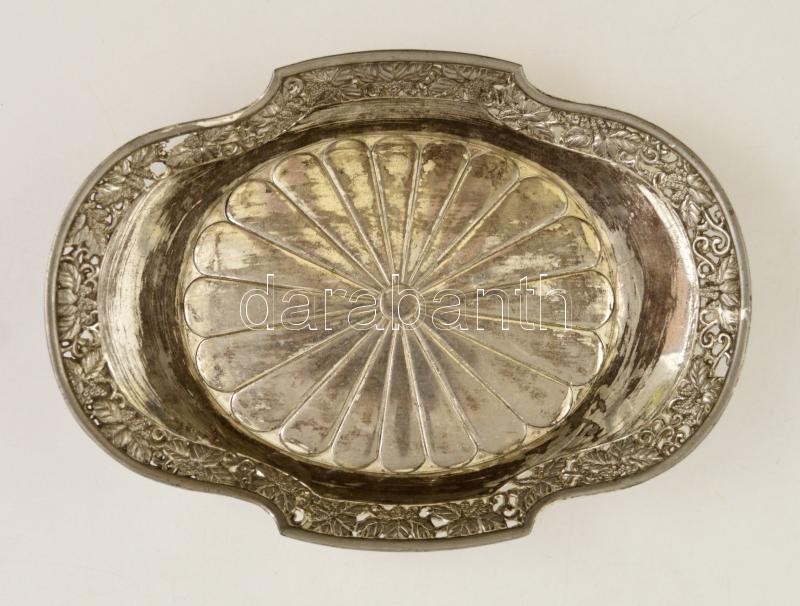 Leírás: Gazdagon díszített alpakka tálca, karcos, 28×20 cm