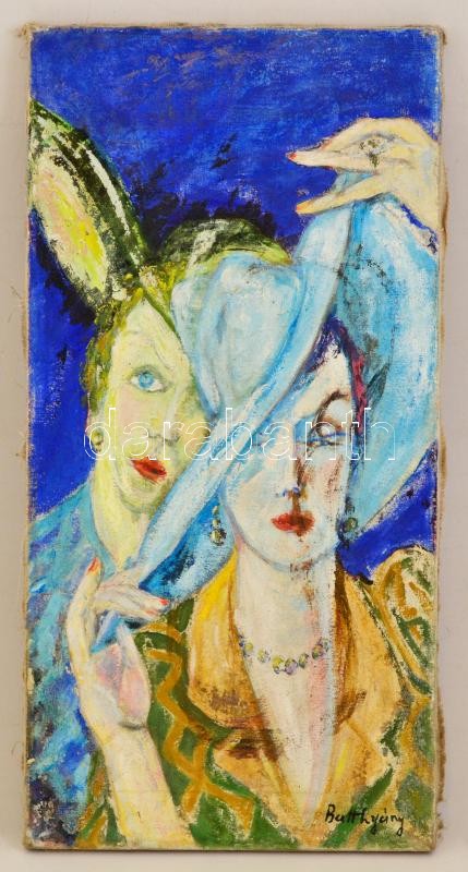 Leírás: Batthyány jelzéssel: Kalapos hölgyek. Olaj, vászon, 60×30 cm
