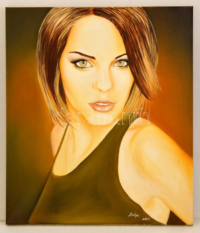 Leírás: Bólyai Krisztina (?-): Csábító tekintet II. Olaj, vászon, 70×60 cm