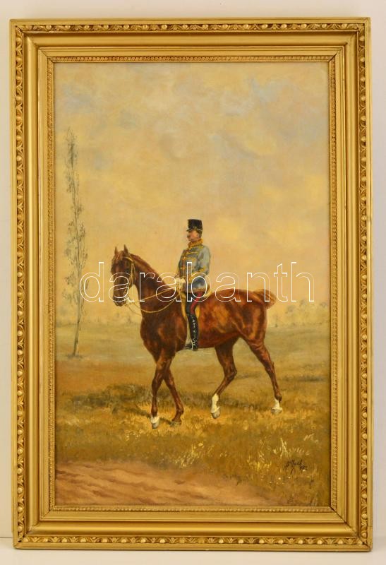 Leírás: BroZech jelzéssel: Huszár a lovon 1912. Olaj, vászon, keretben, 80×50 cm
