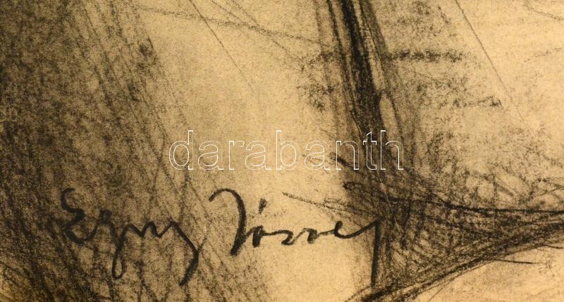 Leírás: Egry jelzéssel: Női portré. Szén, papír, felcsavarva, 60×43 cm