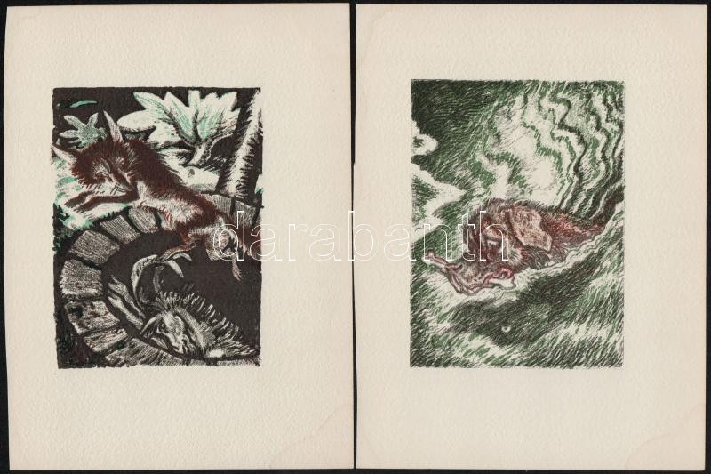 Leírás: Jelzés nélkül: Állatok, 4 db. Litográfia, papír, 13×9,5 cm