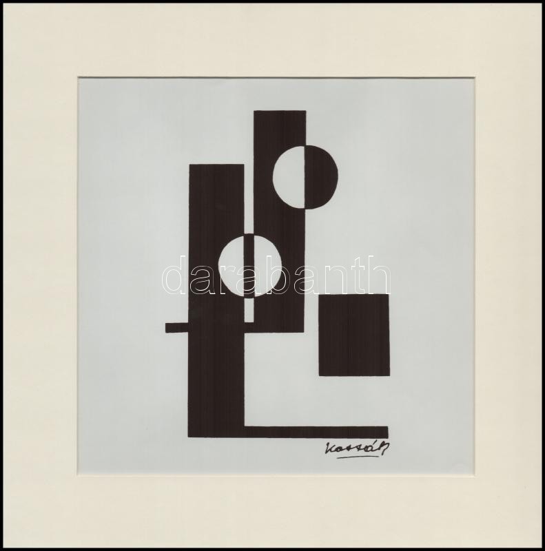 Leírás: Kassák Lajos (1887-1967): Kompozíció. Ofszet, papír, jelzett a nyomaton, 22×22 cm