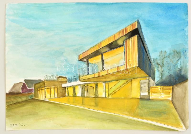 Leírás: Korda jelzéssel: Modern ház. Akvarell-tus, papír, 29×42 cm