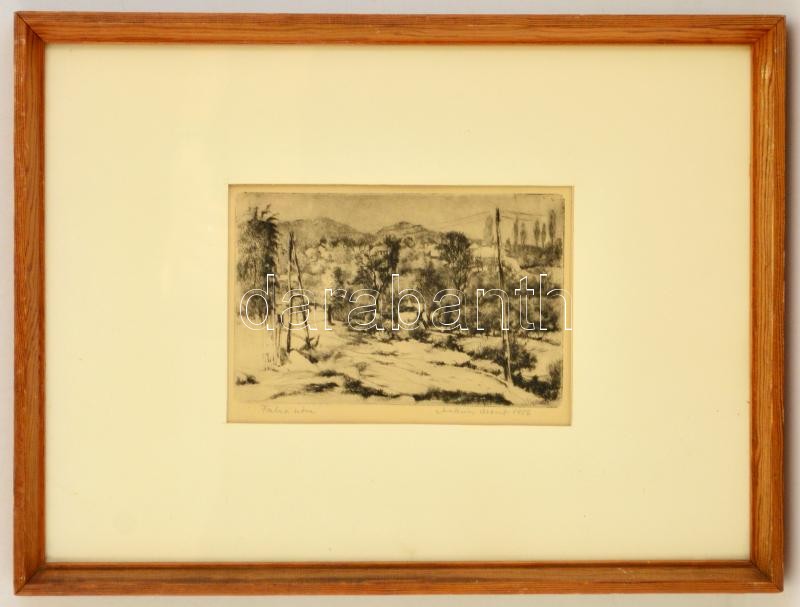 Leírás: Maknics Albert (1922-): Falusi utca. Rézkarc, papír, jelzett, üvegezett keretben, 13×19 cm
