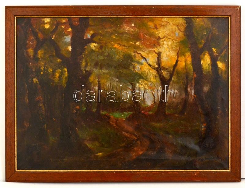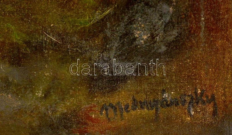 Leírás: Mednyánszky jelzéssel: Őszi erdő. Olaj, vászon, sérült, keretben, 50×70 cm