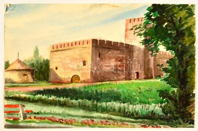 Leírás: Nádler jelzéssel: Gyulai vár. Akvarell, papír, 20×31 cm