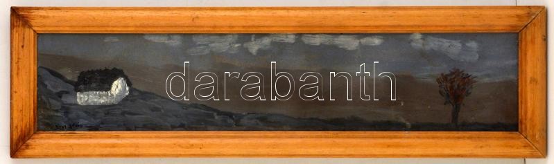 Leírás: Nagy jelzéssel: Magányos fa. Olaj, farost, keretben, 13×60 cm