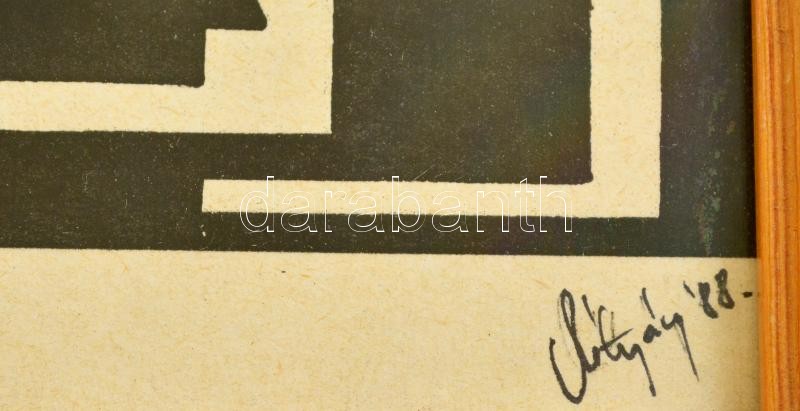 Leírás: Olvashatatlan jelzéssel: Ikarus 88. Tus, papír, üvegezett keretben, 29×22 cm