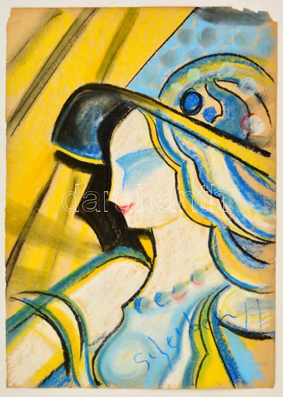Leírás: Scheiber jelzéssel: Kalapos nő, pasztell, papír, 42×30 cm