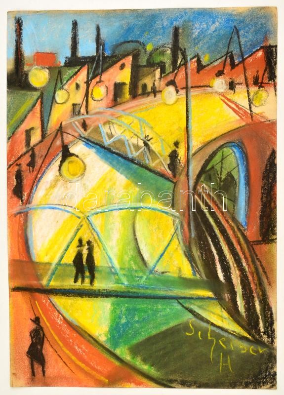 Leírás: Scheiber jelzéssel: Város, pasztell, papír, 42×30 cm