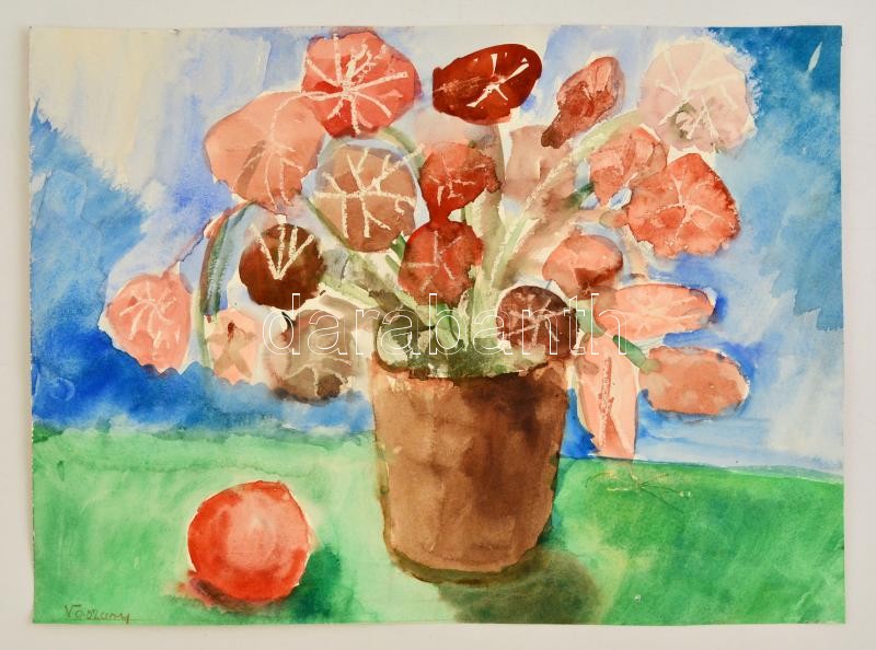 Vaszary jelzéssel: Virágcsendélet. Akvarell, papír, 29×39 cm https://www.darabanth.com/hu/326-Gyorsarveres/326.0/Festmeny-mutargy-papirregiseg-egyeb/Festmenyek-es-grafikak~500001/Vaszary-jelzessel-Viragcsendelet-Akvarell-papir-29C39739-cm~II1817328