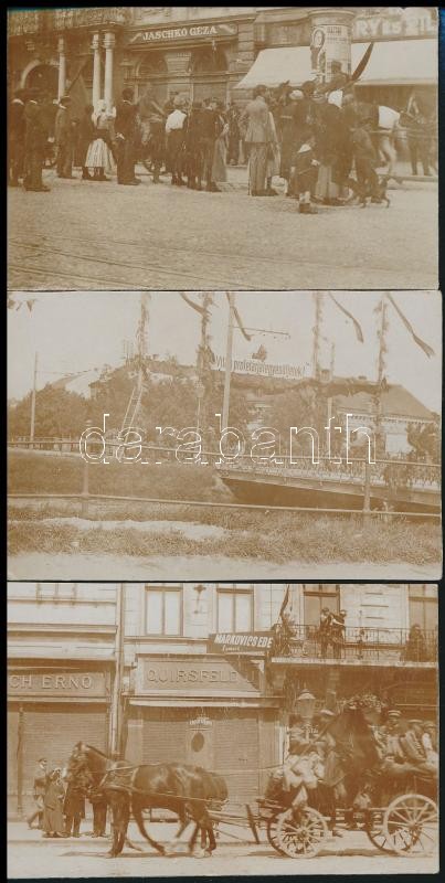 Leírás: 1919 Kassa a Tanácsköztársaság idején, 3 db fotó, hátuljukon feliratozva, 5,5×8 cm