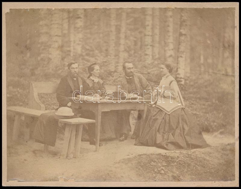 Leírás: cca 1860 Murányi Ignác (1818-1869) Temes vármegyei ispán, felesége Ónody Magdolna, gyermekük, Murányi Magdolna és férje. 15x12 cm