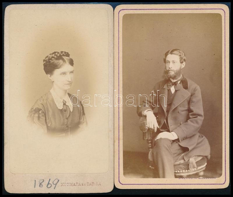 cca 1869 Kozmata és Tsa pesti műtermében készült, 2 db vizitkártya mér... https://www.darabanth.com/hu/326-Gyorsarveres/326.0/Festmeny-mutargy-papirregiseg-egyeb/Foto~500020/cca-1869-Kozmata-es-Tsa-pesti-mutermeben-keszult-2-db-vizitkartya-meretu-fenykep-az-egyi~II1812434