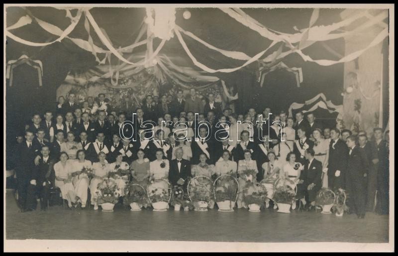 Leírás: cca 1930 Keszthely, bálozók, fotólap Korompay műterméből, hátulján feliratozva, 9×14 cm